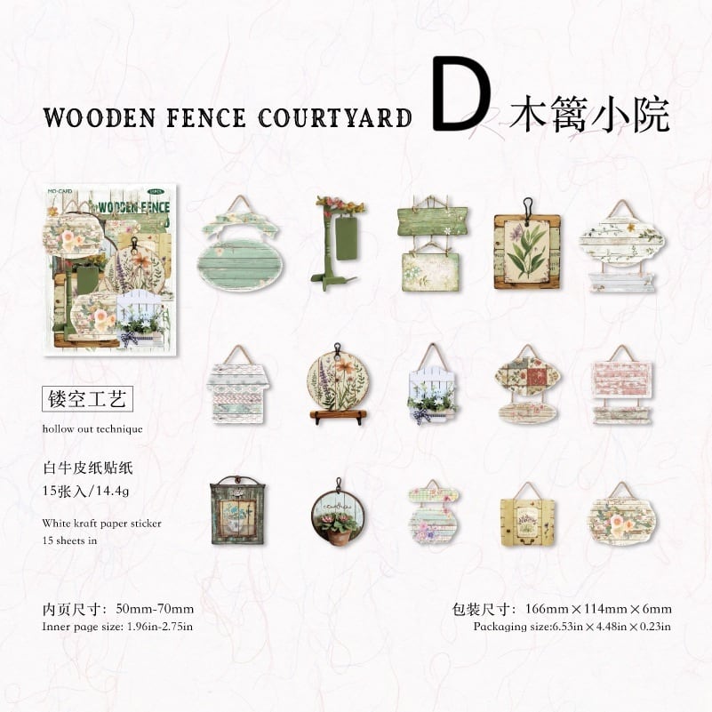 - 【新入荷】ステッカー アンティーク調 AB21 15枚入 田園風景 吊り看板 レトロ 海外 コラージュ ヴィンテージ 素材 デコレーション