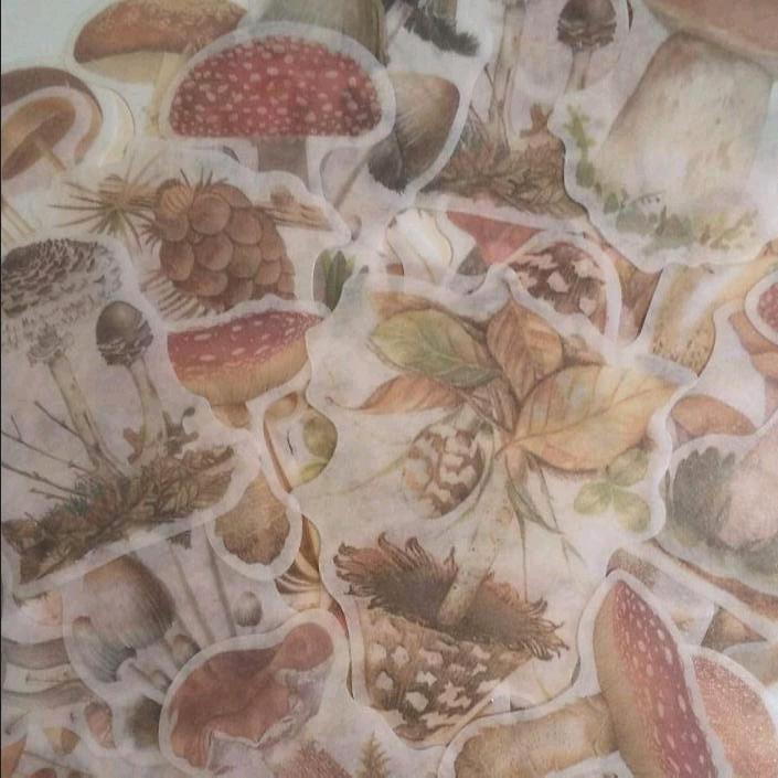- J103 きのこ ステッカー フレークシール 60枚 コラージュ ヴィンテージ 素材 デコレーション 手帳 シール スクラップブッキング