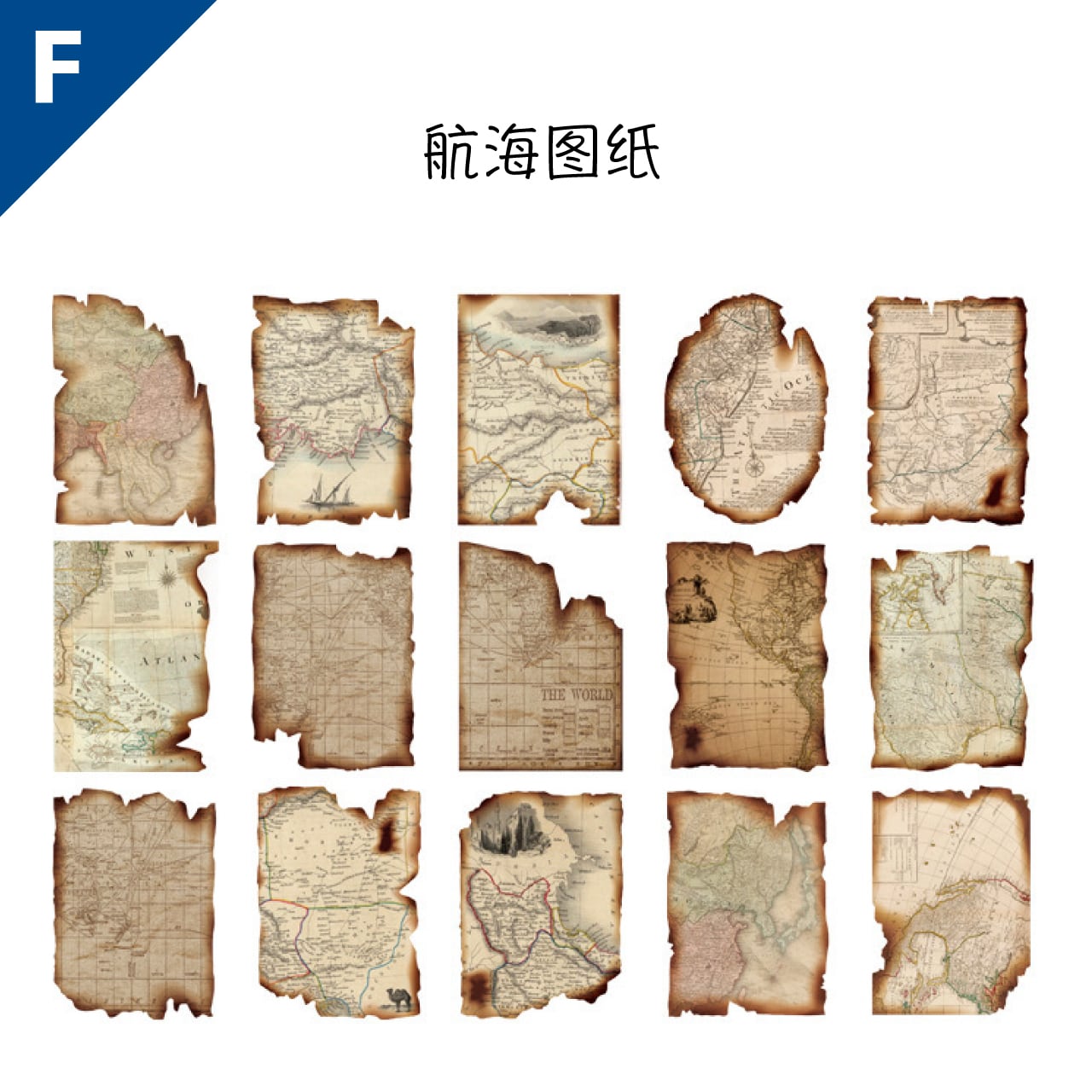 - 【在庫限り】素材紙 紙もの 全6種 30枚 レトロ ヴィンテージ風 手記 昔の地図 薔薇 航海図 古典 蝶 新聞 楽譜 地図 手書き ほぼ日 ジャンクジャーナル 海外 コラージュ素材 R16