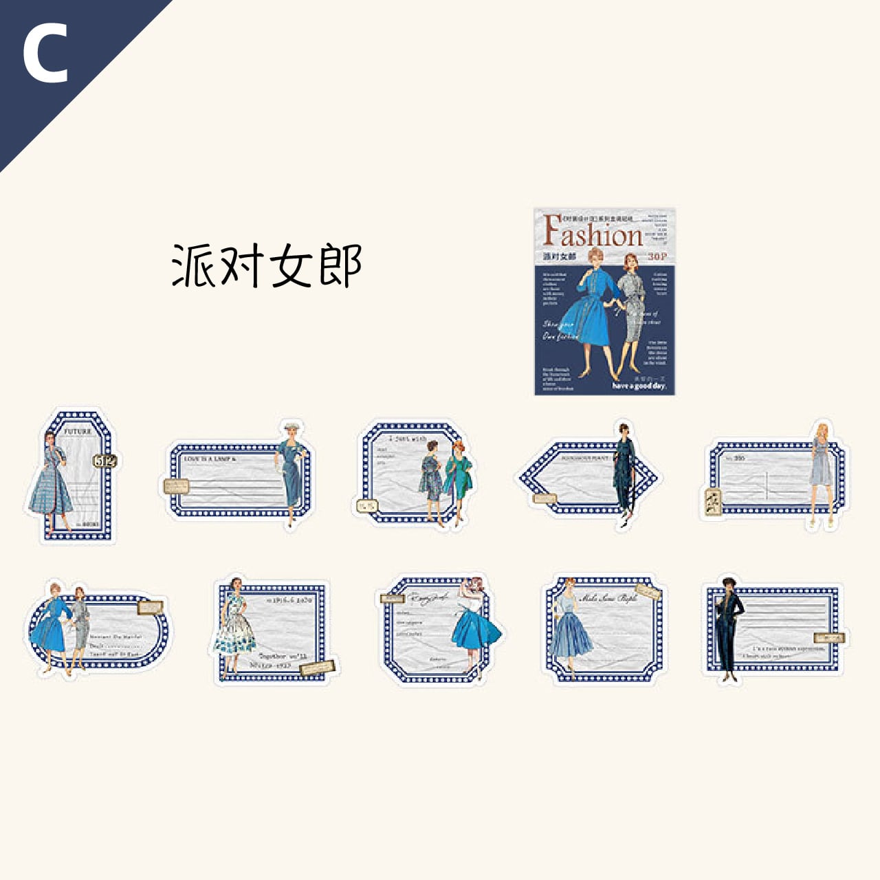 BOX入り ステッカー フレームシール 全8種 30枚 シール くすみカラー レトロ ヴィンテージ風 箱入り ファッション フレーム イラスト 赤 黒 青 緑 オレンジ 白 ピンク ドレスほぼ日 ジャンクジャーナル 海外 コラージュ素材 S09