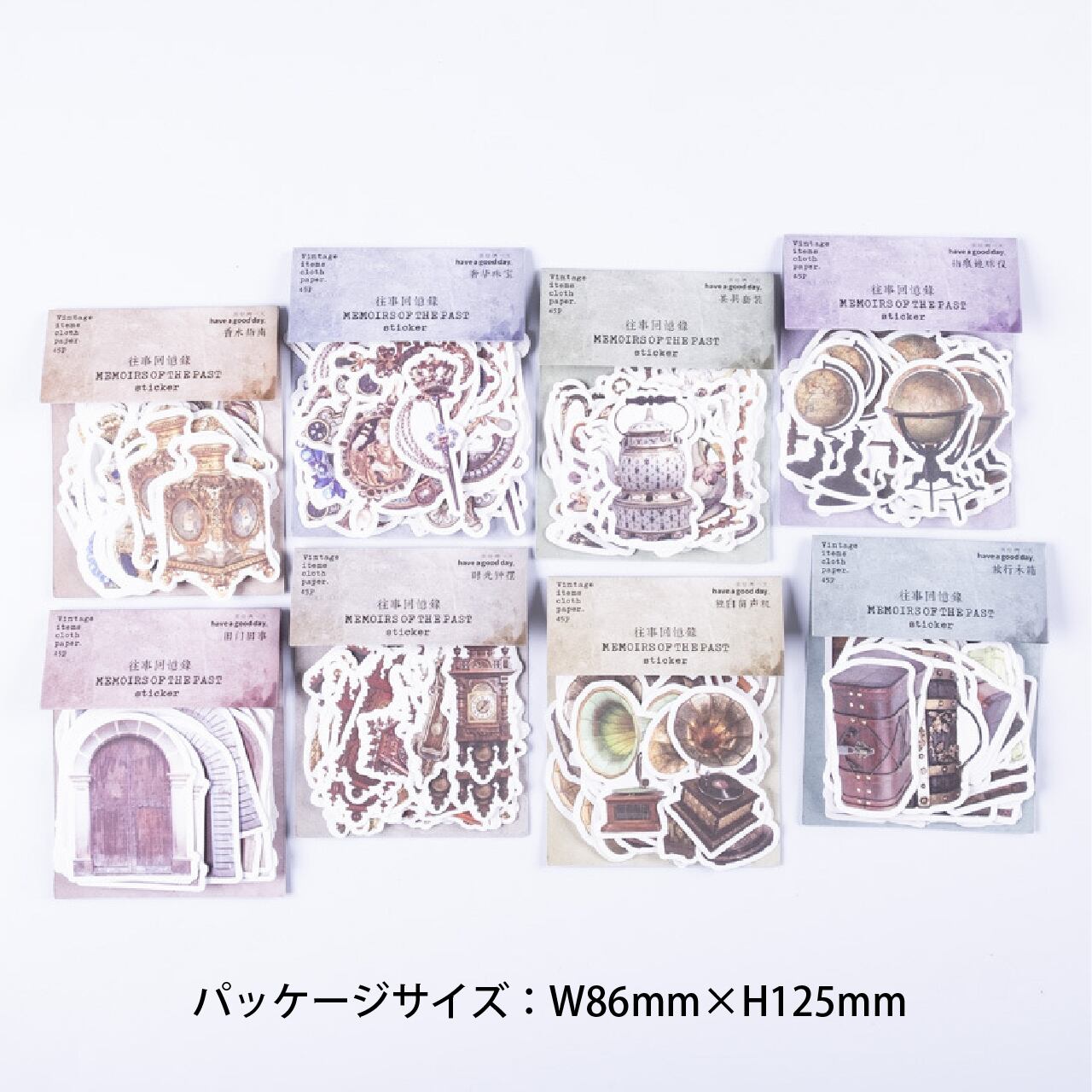ステッカー ヴィンテージ風 全8種 45枚入 シール 貼り物 レトロ クラシカル 置物 時計 香水 扉 蓄音機 茶器 アンティークトランク 海外 コラージュ素材 U32