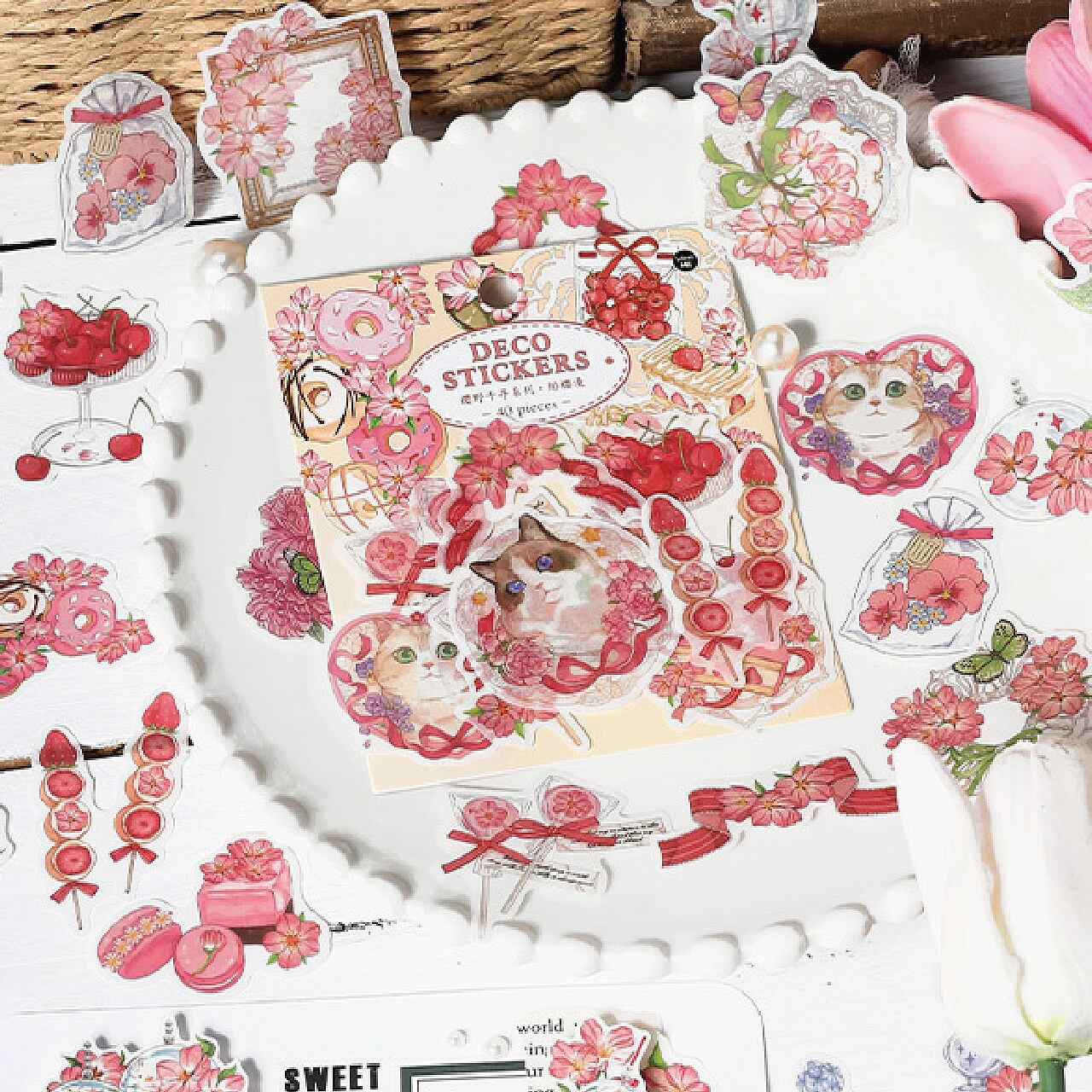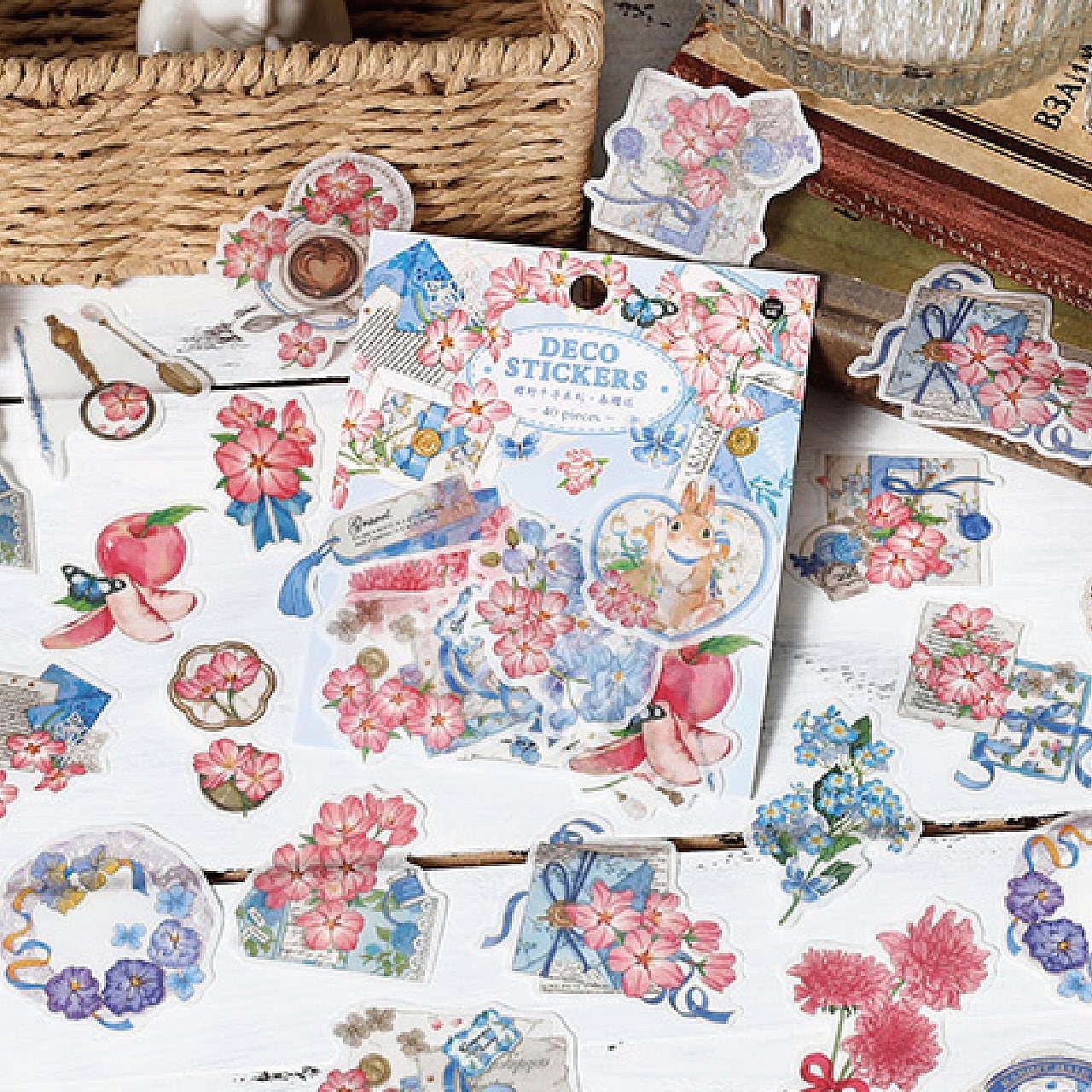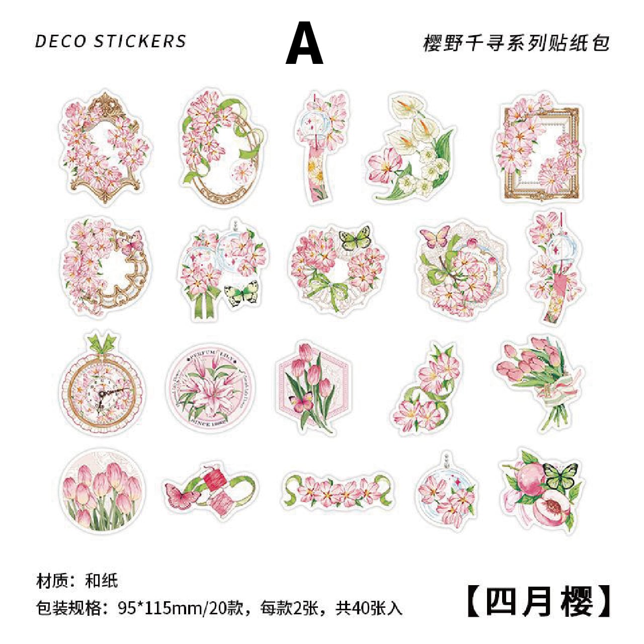 - ファンタジック 花束 リース レター素材 メモ装飾 多種類 装飾 花 フラワー ガーデン 春 レター お菓子 スイーツ 花瓶 かわいい おしゃれ 全4種類 40枚 シールアート ステッカー シール デコレーション コラージュ素材 海外 X34