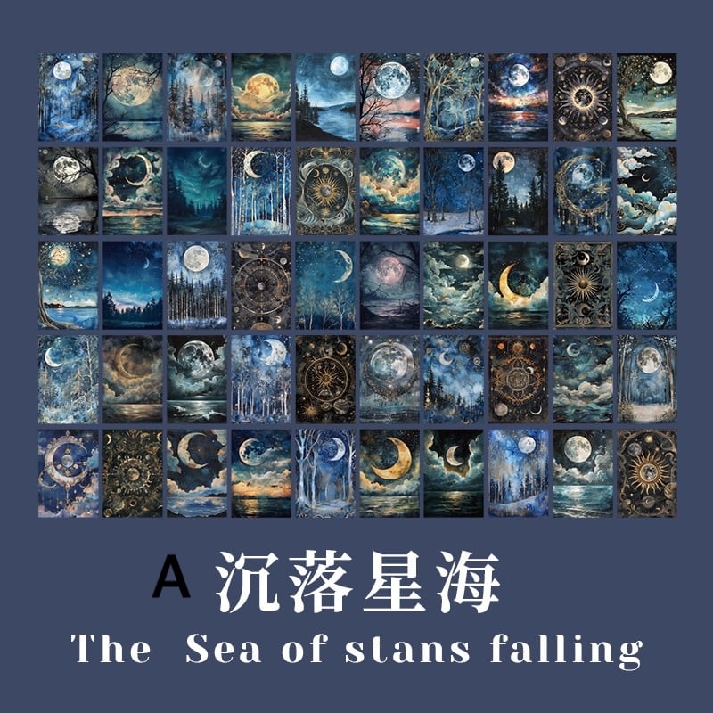 素材紙 豆本 100枚入 50デザイン 月 星 蝶々 レトロ アンティーク調 鳥 くらげ 景色 ほぼ日 海外 コラージュ コラージュ素材