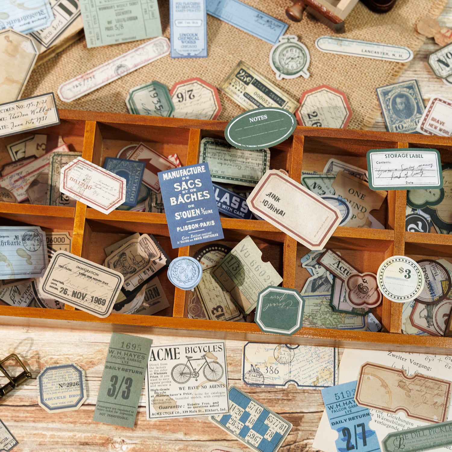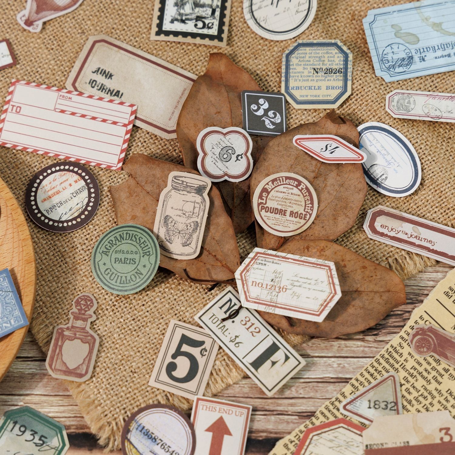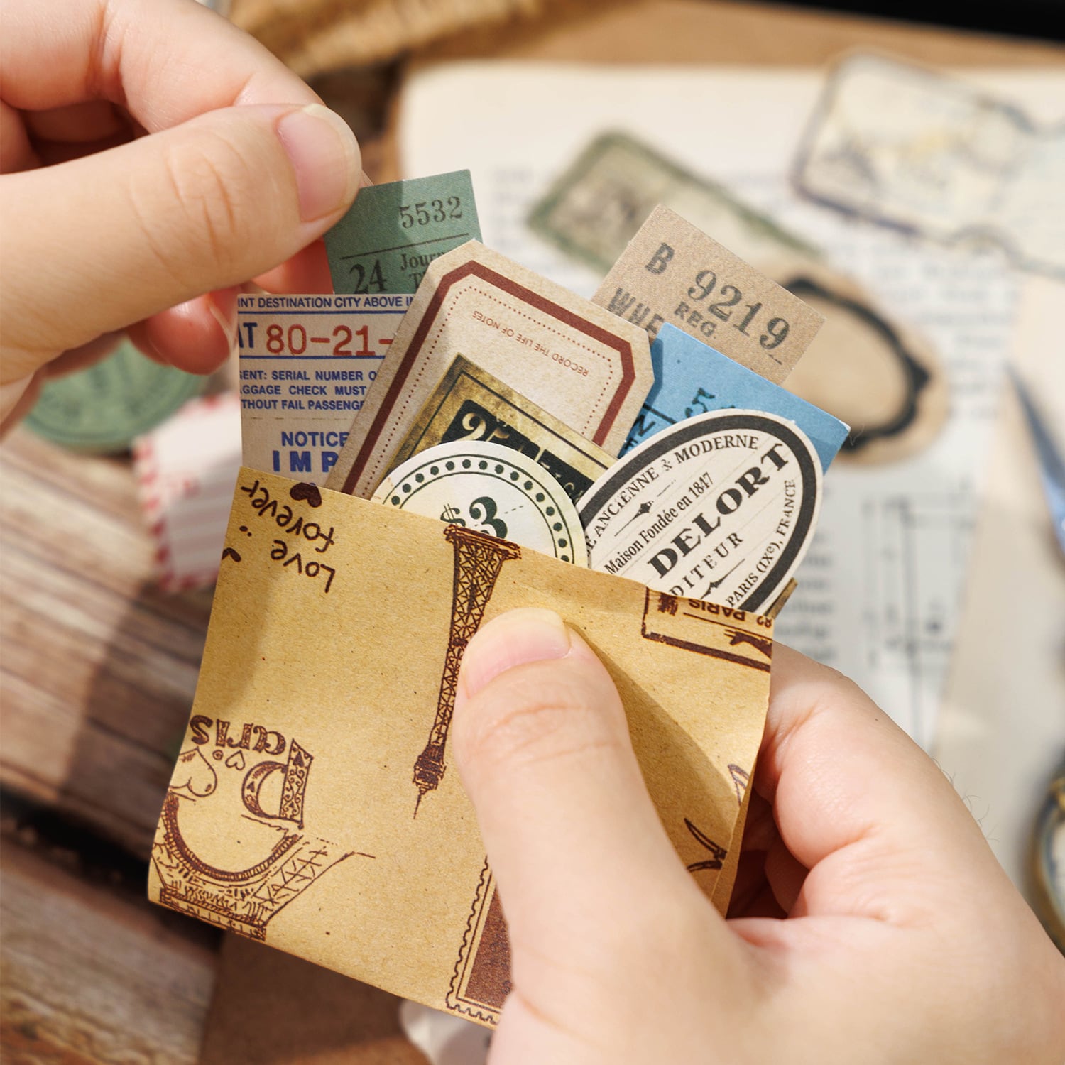 - Z46 ステッカー 60枚入 メモ チケット風 切符 蝶々 貴族 レトロ アンティーク調 コラージュ素材 海外 ほぼ日