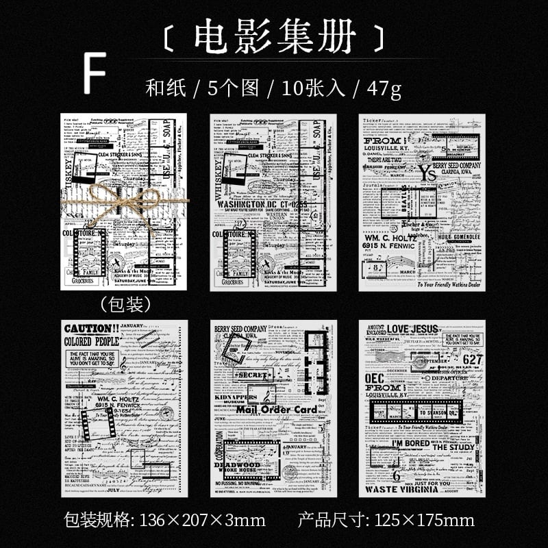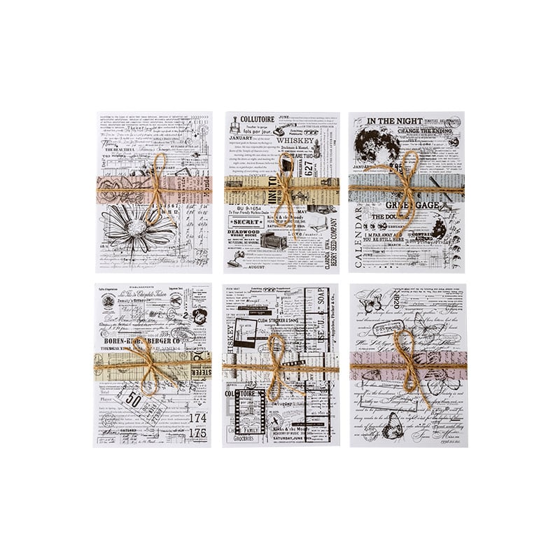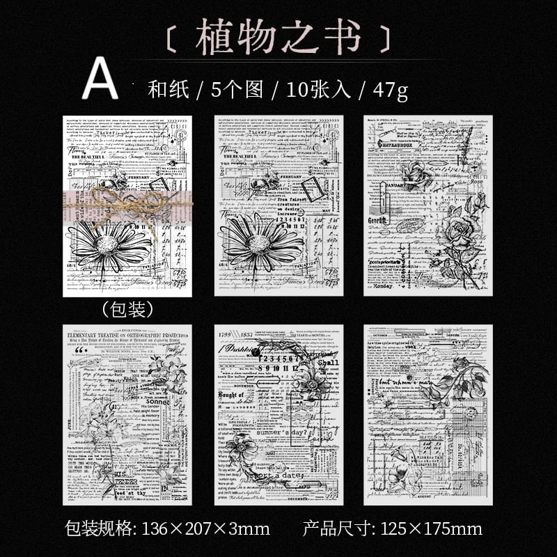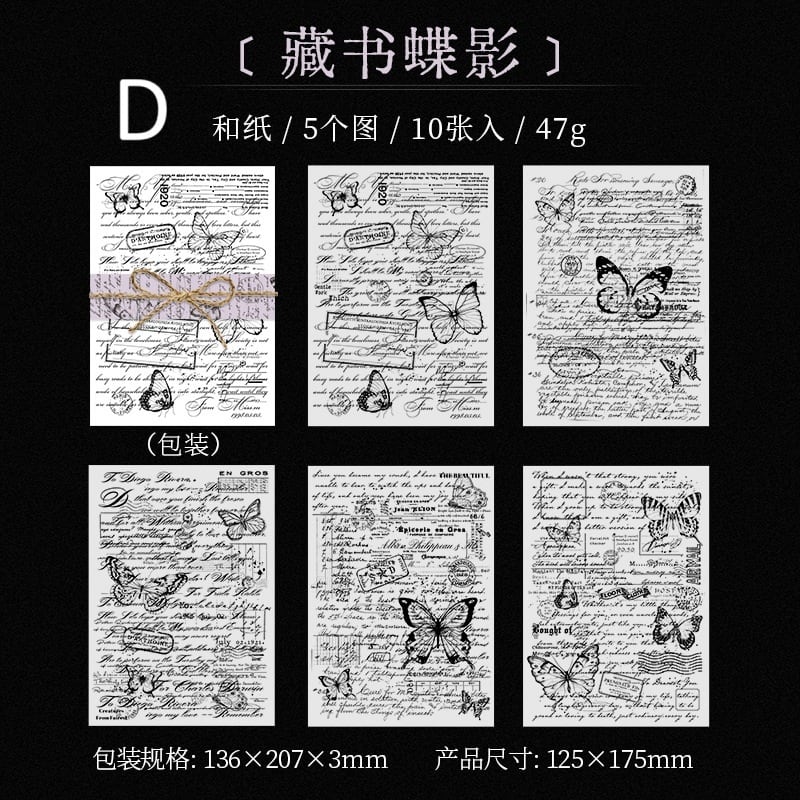 素材紙 和紙素材 5デザイン 10枚入 植物 古新聞 映画 蝶 月 チケット アンティーク コラージュ素材 海外 ほぼ日